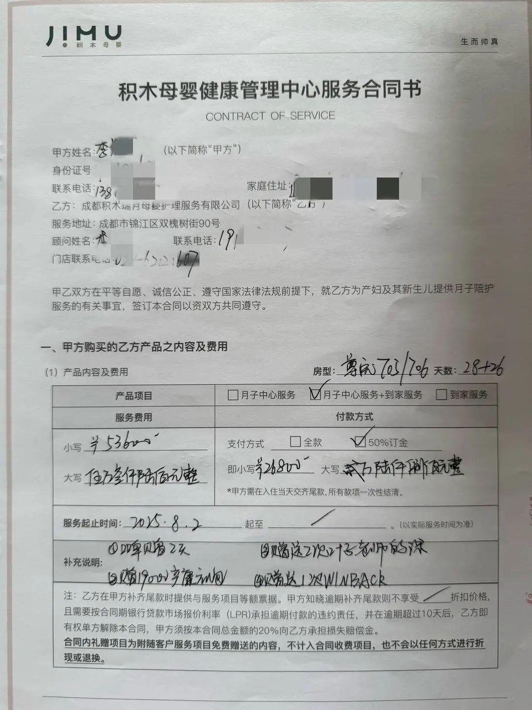 然而,到了6月底、7月初,她还是看到了成都积木月子中心经营异常的消息,“听说这家店之前就拖欠月嫂、产康人员工资。后面我去了一次,店里基本是空的,负责人、工作人员都不在,只有几个宝妈和月嫂。”
