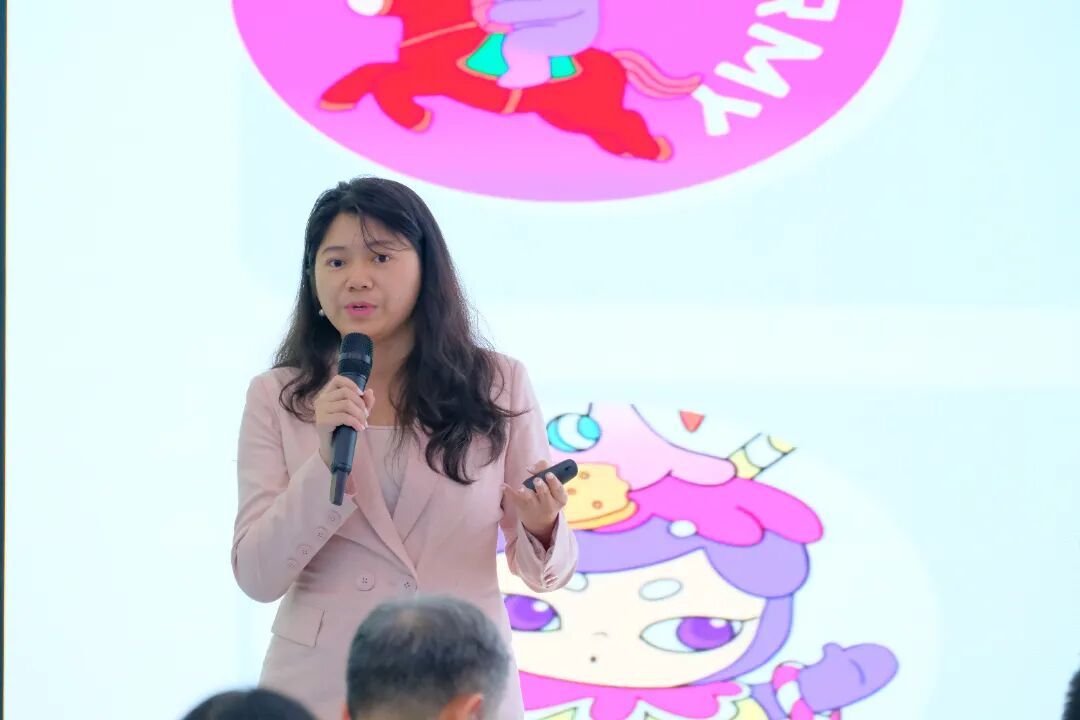 艺术维C创始人陈晓勤分享了“Warmy幸运鹅”潮玩IP的创作理念与故事。有20年艺术资深经验的她,从艺术策展人、媒体人回归到艺术家身份,她带有独特创作视觉,推出“越探索越幸运”、“我的艺术鹅探索”等主题IP内容。