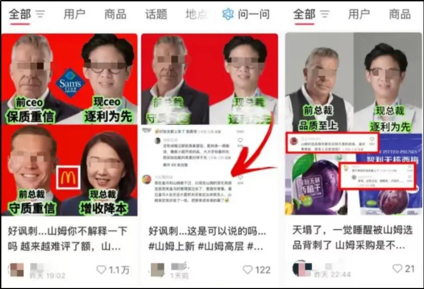有人则以讹传讹,将矛头指向山姆现任高管,认为太急功近利,因此社交平台上有许多怒骂高管的文章。有评论说:“有种阿里被裁中层入职外企污染职场环境的感觉。”