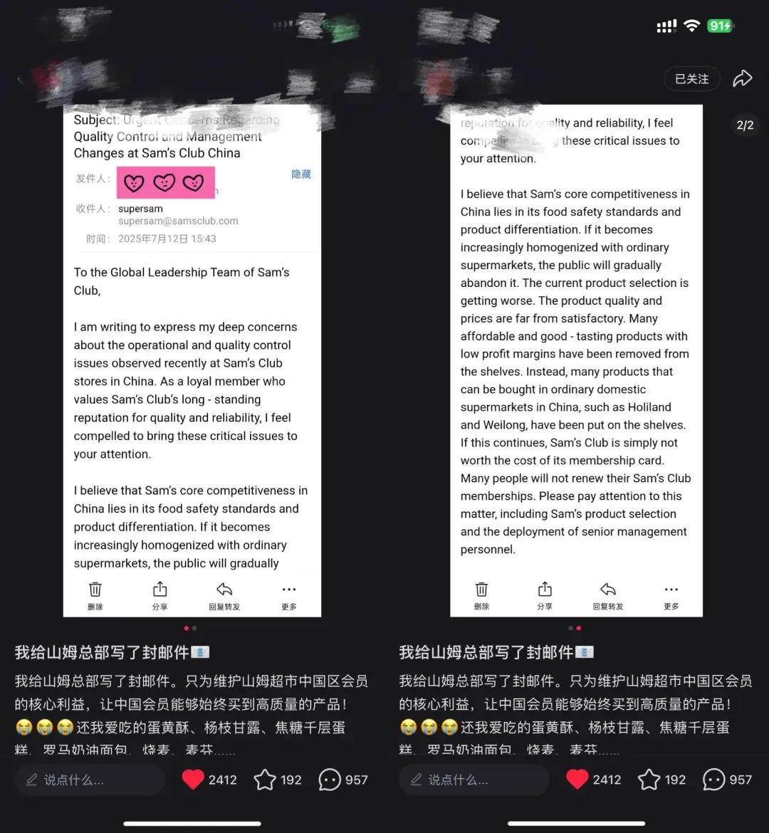这下别说是差异化,连基本的品质保障都存疑,不禁让人怀疑山姆是不是在降本增效,是不是在学习“亲爹”沃尔玛。